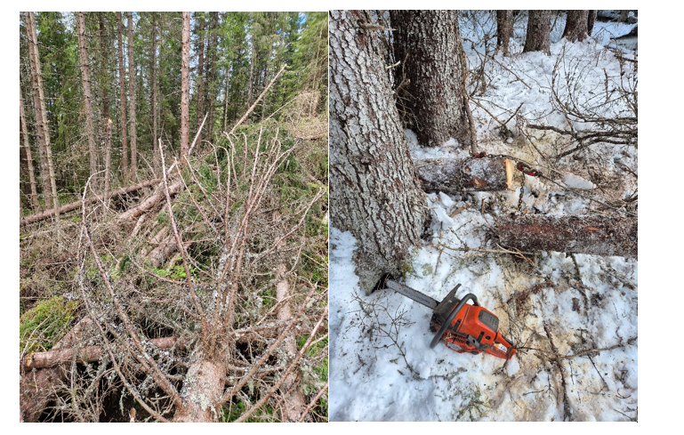 Slik så det ut mange steder på Innherred etter stormene vinteren 2025. Mye av stormskadene er nå ryddet opp. Foto: Rune Saursaunet.
