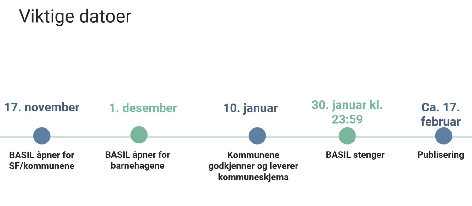 - Oppfølging av barnehagene: Kommunen skal purre på de barnehagene som ikke leverer innen fristen eller som leverer et mangelfullt eller feilaktig utfylt skjema.