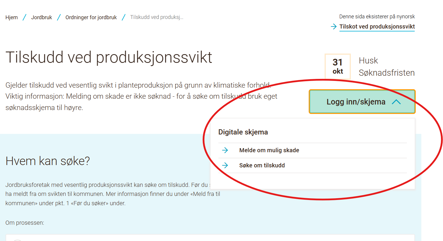 Melding om mulig skade er ikke å regne som søknad. Du må også levere søknad innen søknadsfristen 31. oktober.