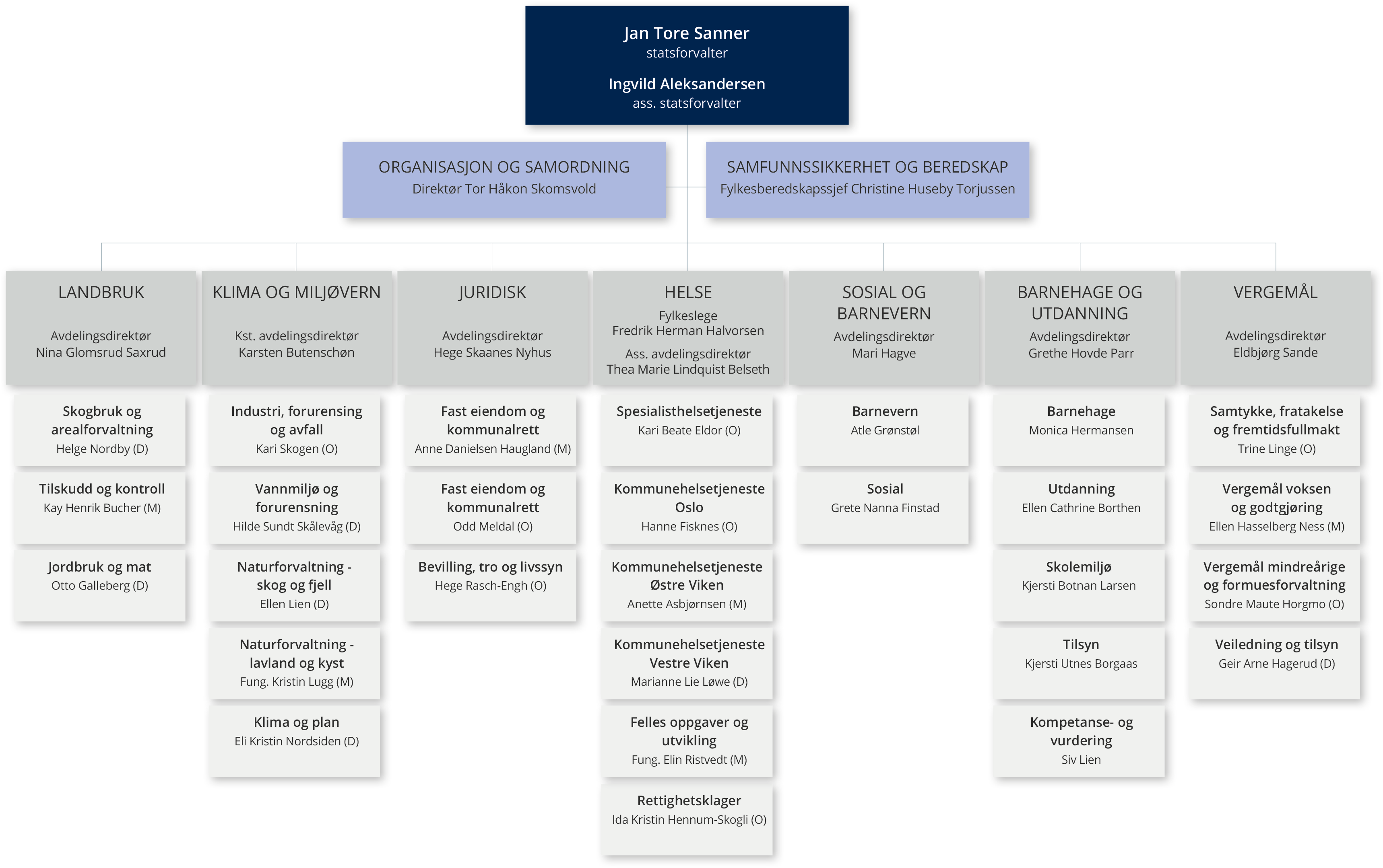 Hos Statsforvalteren i Østfold, Buskerud, Oslo og Akershus er over 500 medarbeidere organisert i to staber og syv fagavdelinger.
