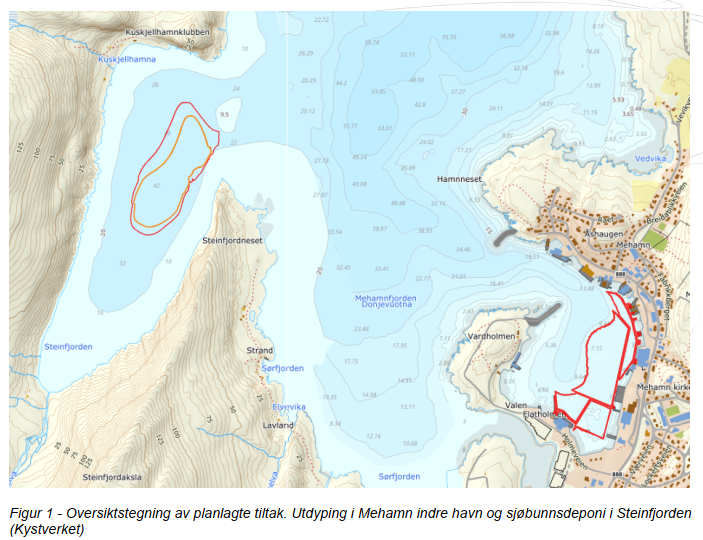Tiltakene i denne søknaden omfatter et mudringstiltak i Mehamn fiskerihavn og deponering i sjøbunnsdeponi i Steinfjorden i Gamvik kommune.
