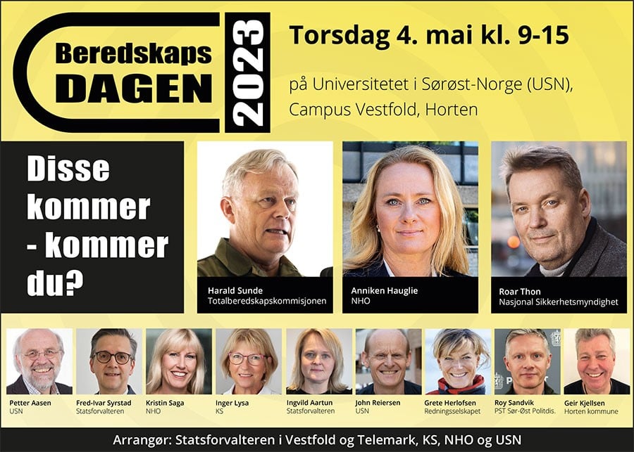 Arrangør: Statsforvalteren, Politiet, Forsvaret og USN i samarbeid med kommuner, NHO og næringsforeninger i Vestfold og Telemark