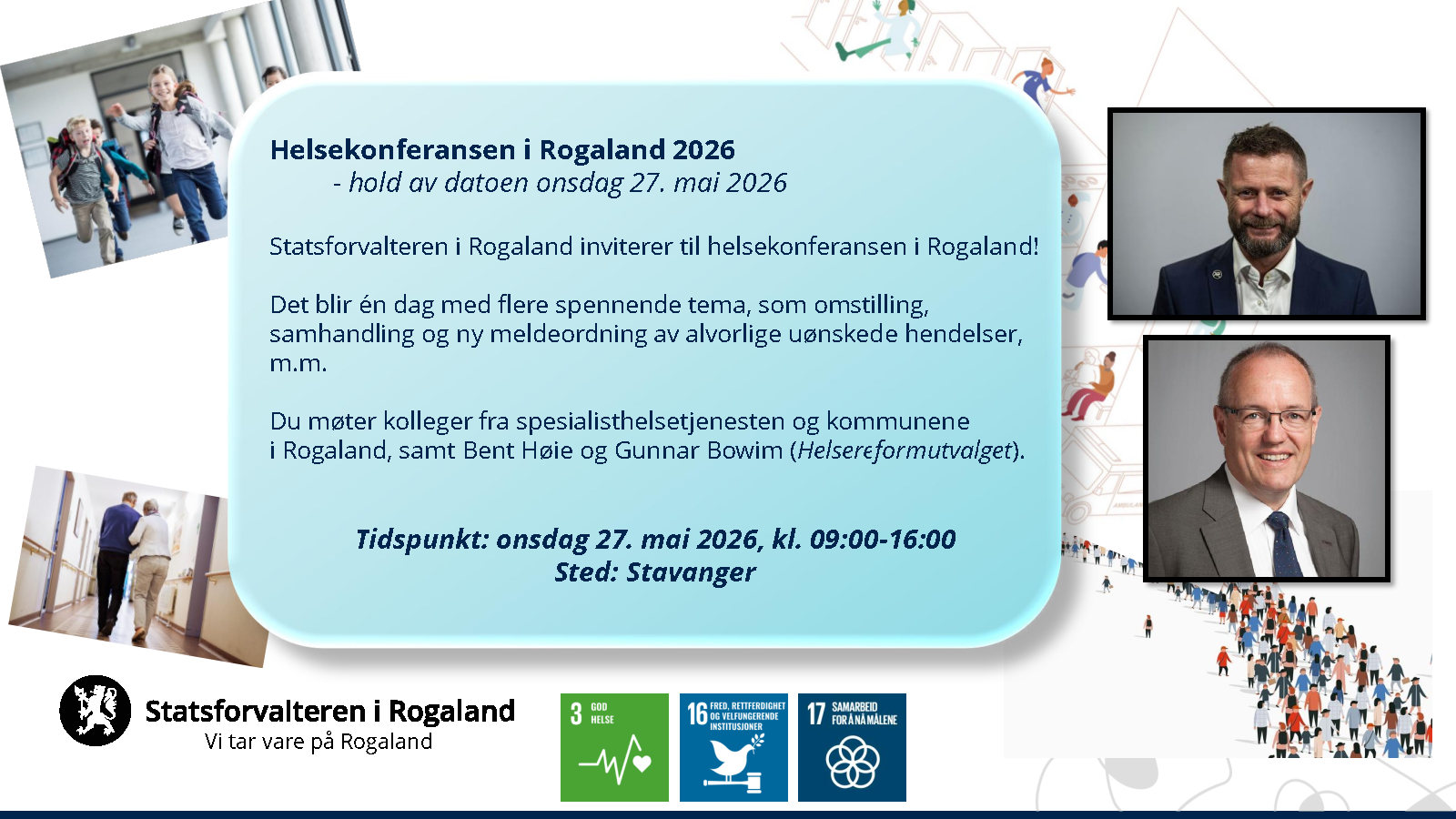 På vegne av statsforvalter Bent Høie ønskes deltakere velkommen til helsekonferansen i Rogaland for 2026!