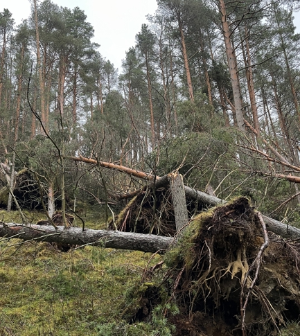 4. oktober 2025 feide sterke vinder gjennom Midt-Norge. Mye skog ble vindfelt, og etter forholdene uvanlig mye furu som normalt er mer stormsterk enn grana. I Trøndelag var det særlig Oppdal stormen felte mye furu, men trolig er det også slike skadefelt i kommuner som Rindal, Rennebu, Orkland og Heim.