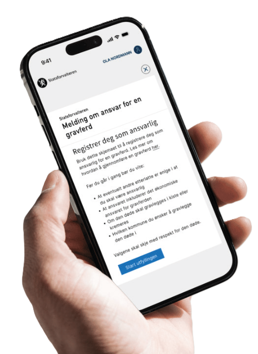 I løpet av 2026 blir løsningen tilgjengelig i hele landet. Foreløpig kan den bare brukes i kommuner der gravplassmyndigheten har tatt den i bruk. Kontakt lokal gravplassmyndighet (ofte kalt kirkeverge) for å høre om løsningen er tilgjengelig der du bor.